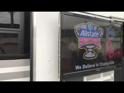 This is an example of the Bass Wagon being used for a dance team in a parade. Notice that we have a commercial for the dance company running the entire time of the parade.