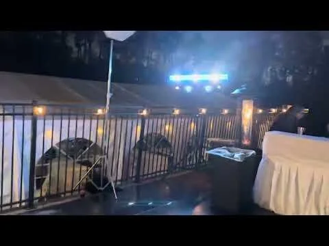 Package includes 4 advanced synchronized lighting units, along with 4, LED moving lighting bars, raised into the air via 2, 10 foot truss footings. Includes fog.